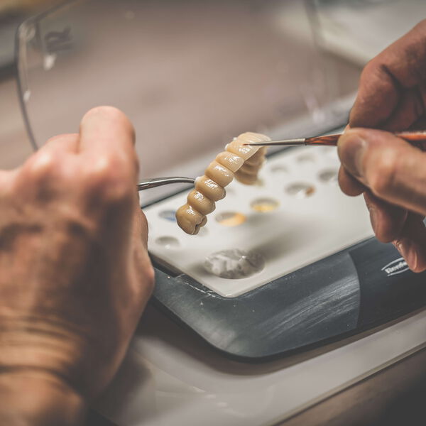 In Handarbeit fertigen wir Keramikverblendungen auf Gerüsten aus Zirkon, Edelmetall oder Nichtedelmetall an. Das Ergebnis ist dauerhaft haltbar und von natürlichen Zähnen kaum zu unterscheiden.